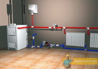 Преимущества установки циркуляционного насоса: Упрощается монтаж, так как отпадает необходимость сооружения сложной и неудобной верхней разводки трубопровода с соблюдением угла уклона. Не требуется главные стояки сооружать из труб большего диаметра. Благодаря этому удается улучшить интерьер помещения. Можно выбрать коллекторный тип разводки трубопровода, при котором обеспечивается равномерный нагрев всех отопительных приборов независимо от степени их удаленности от отопительного котла. Появляется возможность увеличения протяженности трубопроводов. С принудительно циркулирующим носителем можно в систему отопления встраивать дополнительные элементы, например, « теплые полы». Циркуляционный насос устанавливают перед отопительным котлом на обратной магистральной трубе. Там же рекомендуется устанавливать и мембранный (расширительный) бак, являющийся необходимым элементом системы отопления закрытого типа.