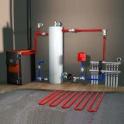 Монтаж отопительной системы, включающей котел, открытый расширительный бак, радиаторы, запорную арматуру, воздухоотводчики, циркуляционный насос, обеспечивающий принудительную циркуляцию теплоносителя