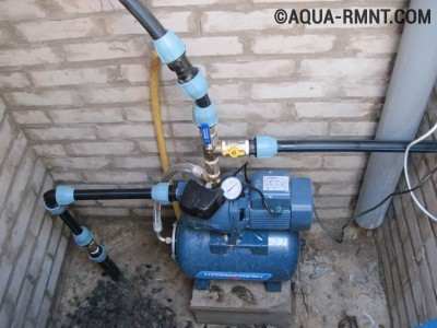При прокладке труб к дому не учтен некоторый запас длины, то есть, не взяты во внимание изгибы и повороты, а возможно и толщина фундамента, сквозь который будет проходить трубопровод. Не затянуты резьбовые соединения ключом. Просто уплотнение и закручивание вручную являются недостаточными. В процессе эксплуатации возможны утечки воды. Не оказано должное внимание гидроаккумулятору. Если давление опускается ниже 1,2-1,5 атмосфер, то его нужно повысить с использованием компрессора или автомобильного насоса.