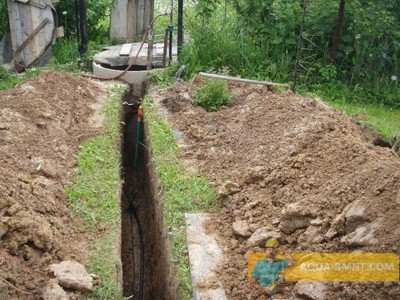 Трубопровод, идущий от колодца до подвала частного дома, укладывается в траншею, вырытую с учетом глубины промерзания грунта в данной местности
