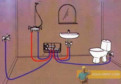 Схема прокладки труб водопровода в частном доме может быть выполнена двумя способами: последовательное подключение потребителей к системе; коллекторное соединение. Первый способ рекомендуется применять в небольших домах, имеющих малое количество потребителей воды. Система справиться с потребностями одного-двух жильцов. При большем количестве проживающих возможно появление неудобств, так как при одновременном включении нескольких точек водоразбора в системе падает давление. В итоге в самом удаленном месте вода бежит еле-еле.