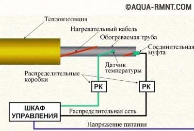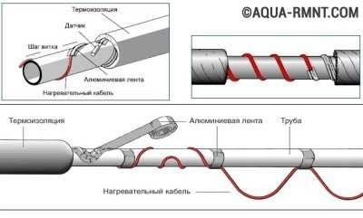 Водопроводные трубы, залегающие на небольшой глубине, а также проходящие по не отапливаемым частям дома, нуждаются в подогреве. В противном случае возникает риск промерзания водопровода в период сильных холодов и прекращения водоснабжения дома. Для решения данной задачи приобретается специальный греющий кабель для водопровода, который прокладывается особым образом внутри труб или обматывается вокруг них. Производители выпускают изделия разной длины (от 2 до 20 и более метров), что позволяет осуществлять подогрев лишь восходящей из-под земли части водопровода или всей системы, находящейся в зоне промерзания грунта.