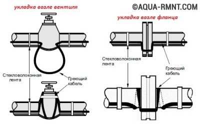 Схема укладки саморегулирующегося нагревательного кабеля вокруг вентиля и фланца