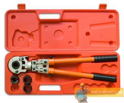 Обжимные пресс клещи — необходимый для установки фитингов инструмент. Выпускаются ручные и гидравлические модели специального оборудования